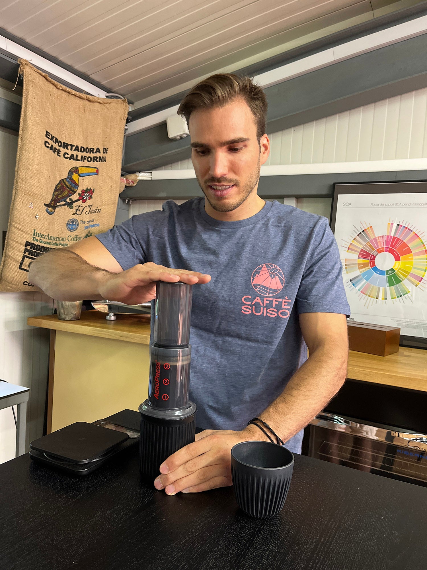 Un altro metodo di estrazione alternativa è l’Aeropress inventato nel 2005 dall’americano Alan Adler e che riesce in pochissimi minuti a estrarre un caffè con poca amarezza e poca acidità.